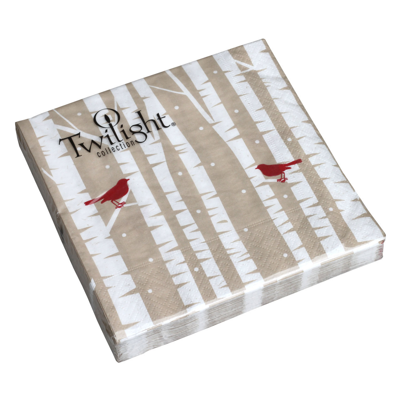 Loading... Please wait...Red birds - All Twilight Collection paper napkins are printed printed in Germany on FSC-certified 3-ply tissue using only water-soluble, food safe colours.